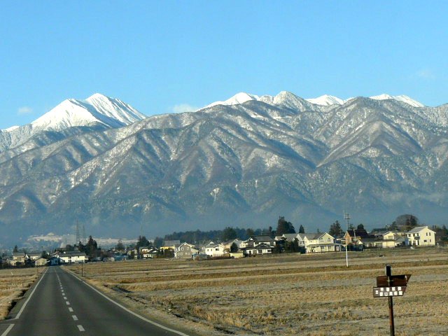 ■安曇野の西には飛騨山脈(常念山脈)の鍋冠山、大滝山、蝶ヶ岳、常念岳、横通岳、大天井岳、燕岳などの山々が聳え、東には光城山、長峰山、明科東川手の押野山・岩州公園・大穴山が連なる。