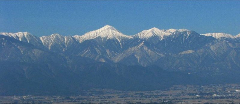 「冠雪した白馬三山」(松川・白馬大橋にて)