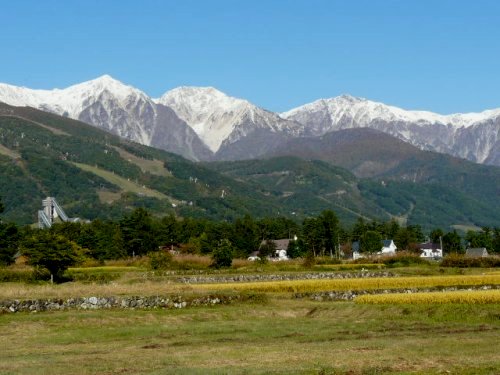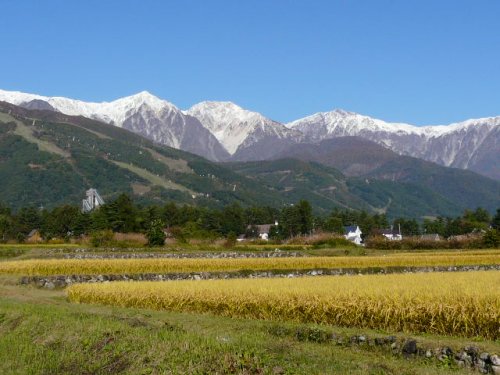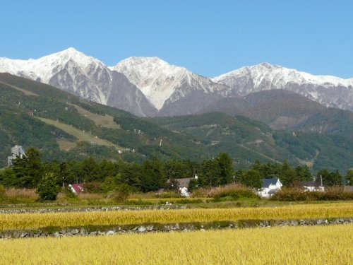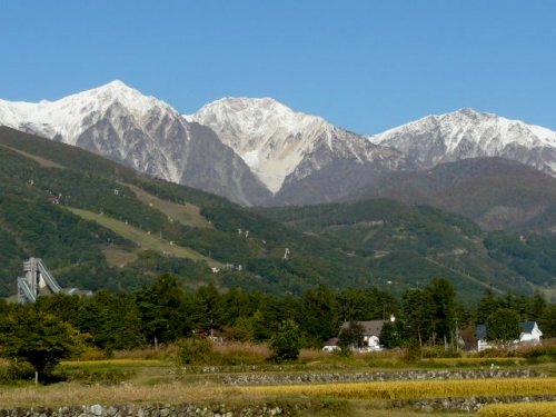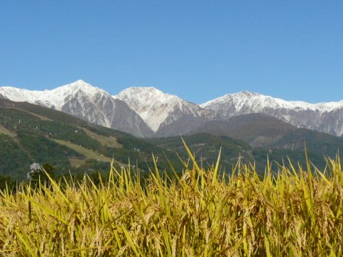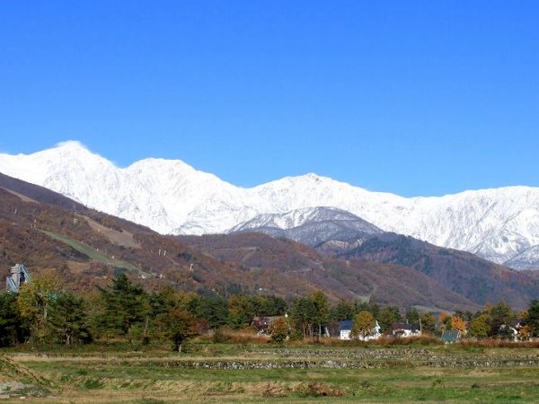 「初冠雪の白馬三山」(白馬山麓)(2010.10.27)
