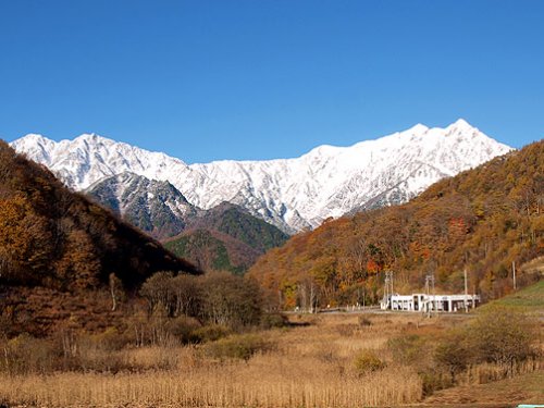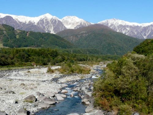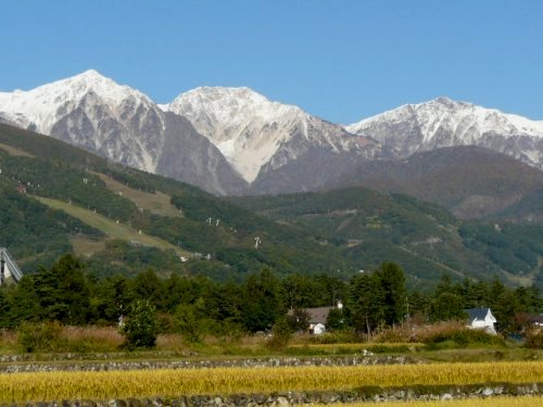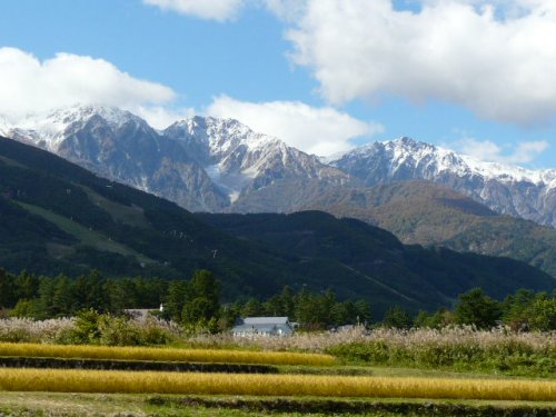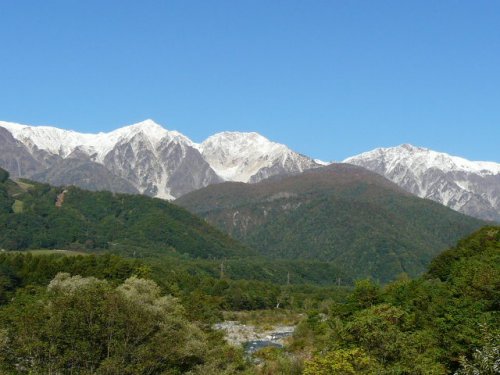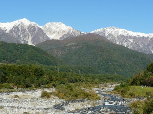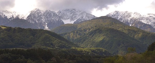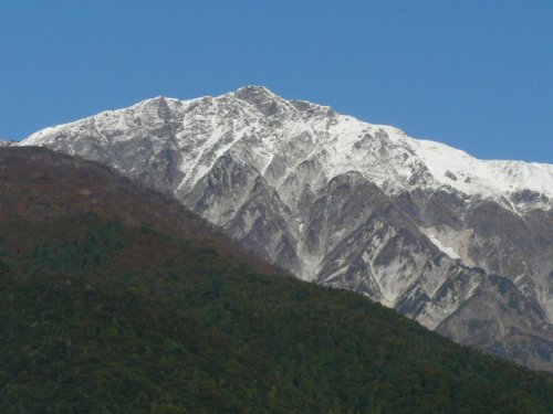 初冠雪の白馬三山(松川にて)(2009.10/12)