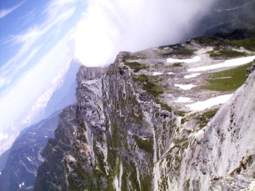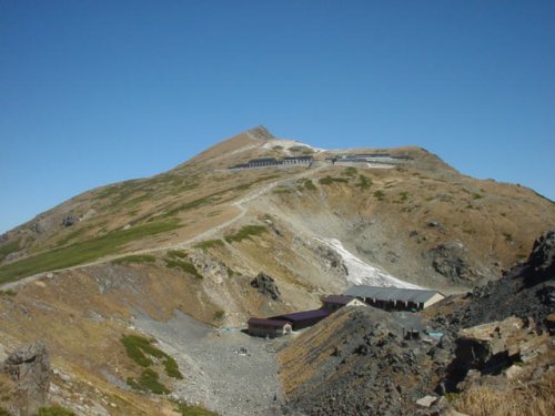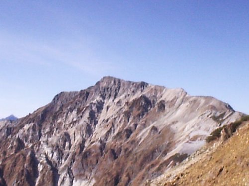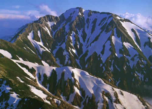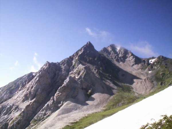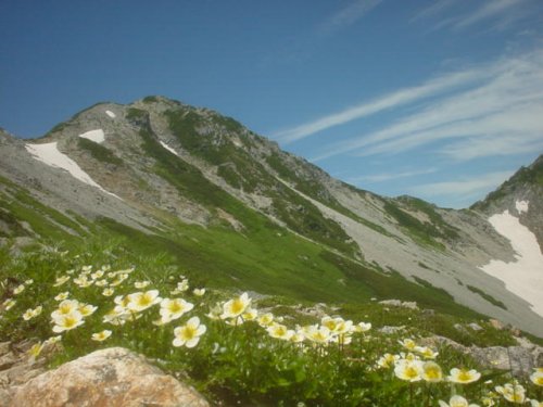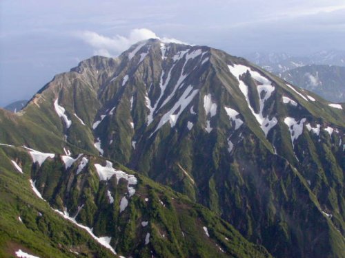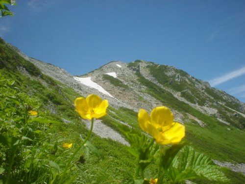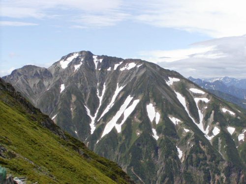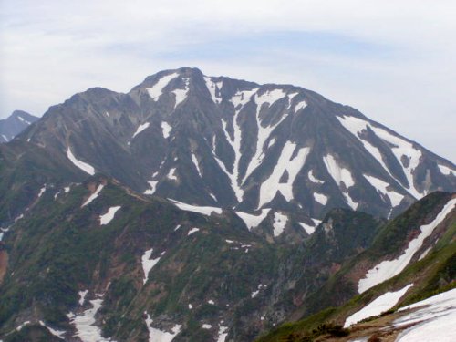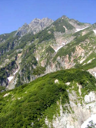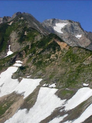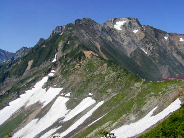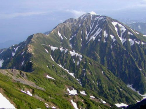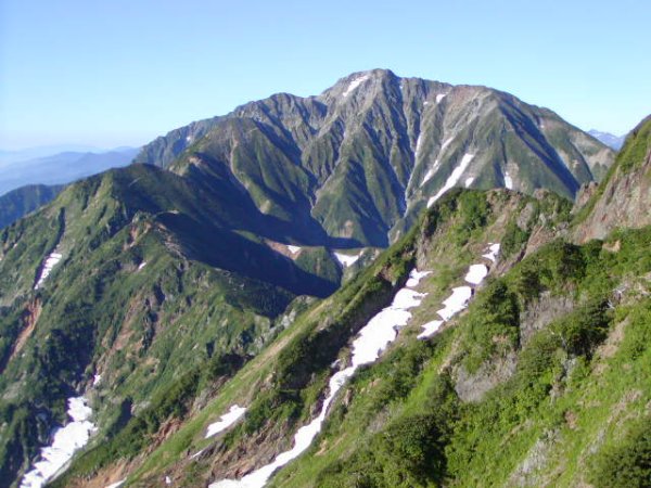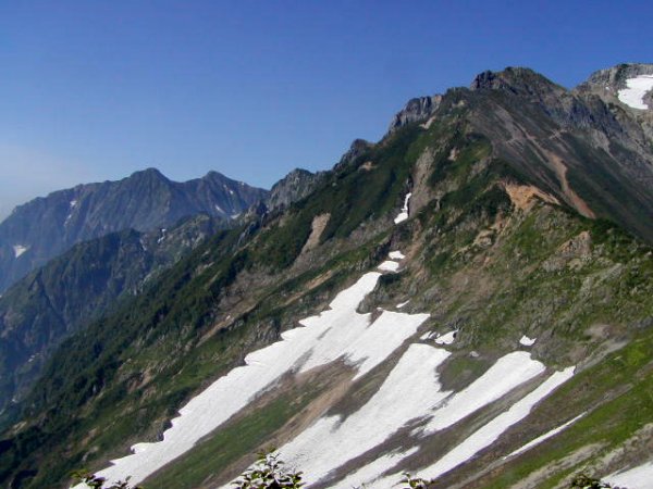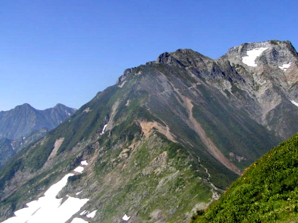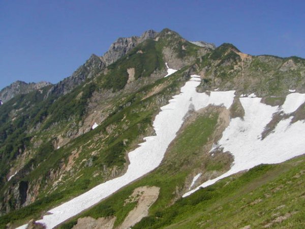 「杓子岳と小雪渓」