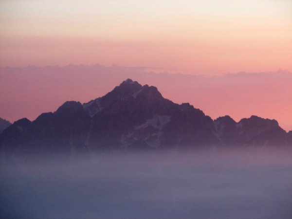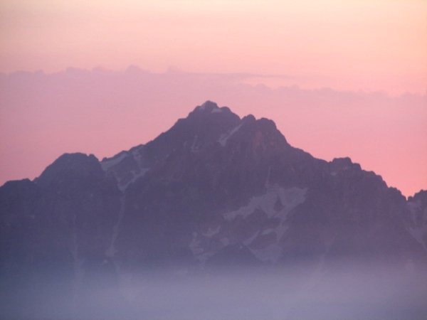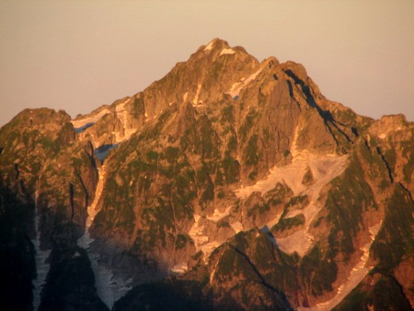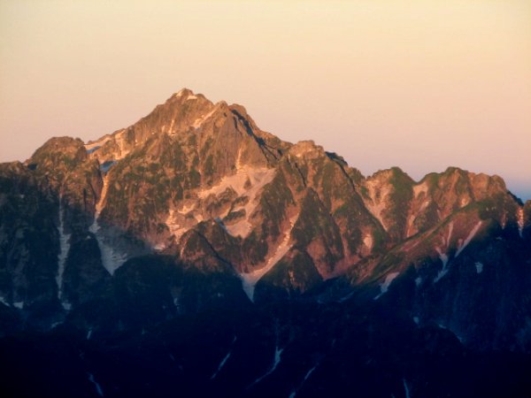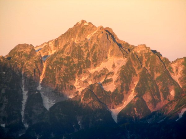 「朝日に染まる晩夏の劔岳」(唐松岳にて)