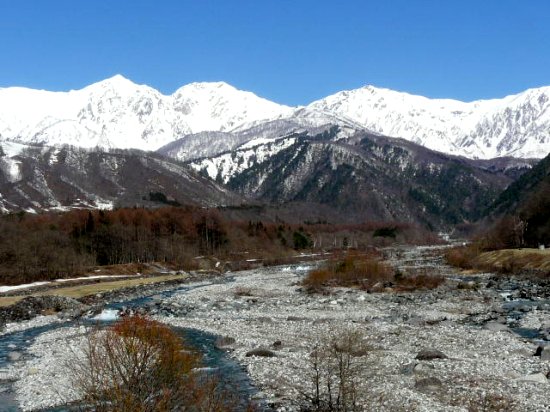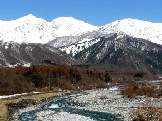 「白馬鑓ヶ岳」・「杓子岳」(白馬松川にて)(2011.04.21)