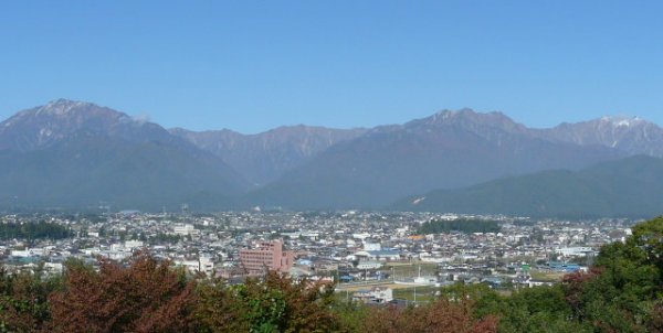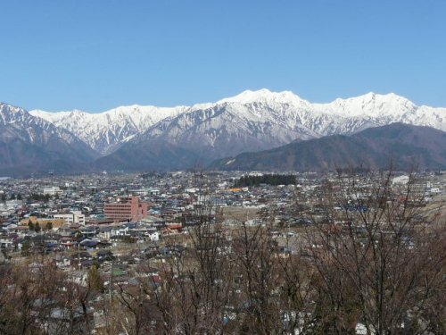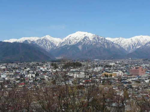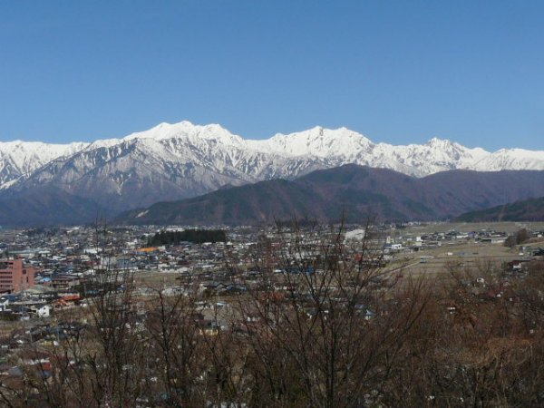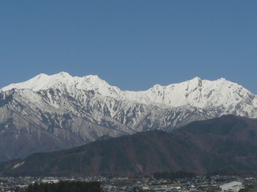 「爺ヶ岳・鹿島槍ヶ岳・五竜岳」(大町公園にて)(2011.04.21)