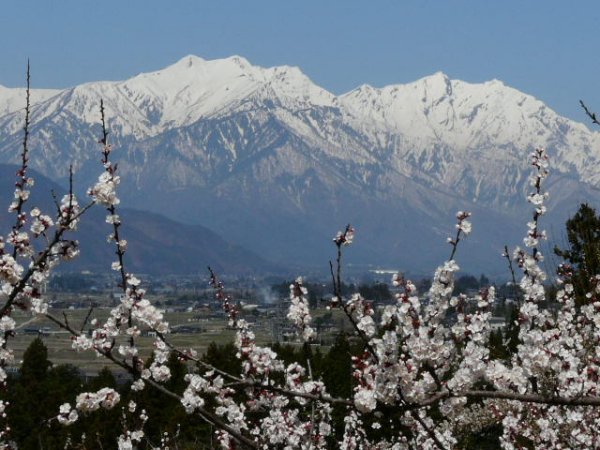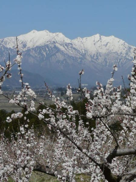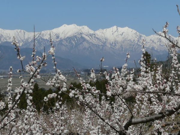 「梅と爺ヶ岳・鹿島槍ヶ岳」(池田町にて)(2011.04.21)