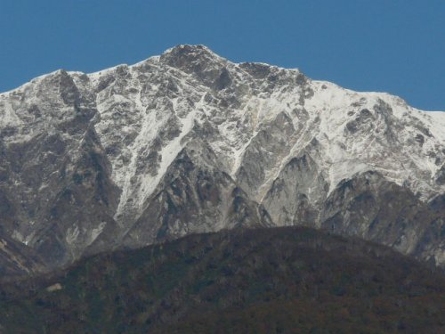 初冠雪の鹿島槍ヶ岳・爺ヶ岳・蓮華岳(大町山岳博物館にて)(2009.10/12)