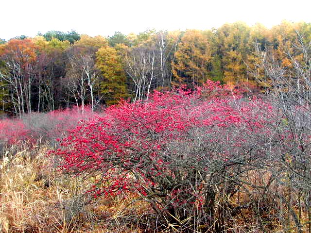 「秋の唐花見湿原とミヤマウメモドキ」(No.1)
