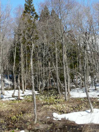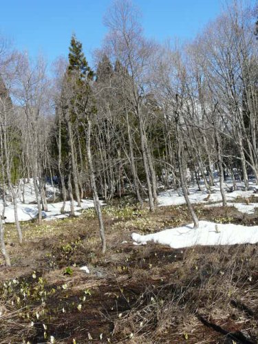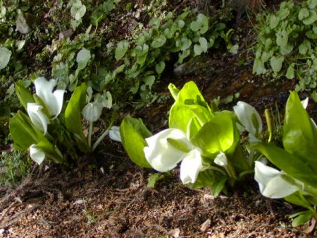 「咲き始めの水芭蕉」(落倉自然園にて)