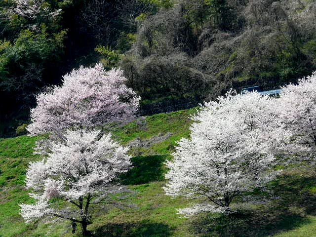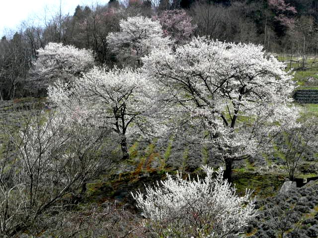 「桜とわさび田」(安曇野・大王わさび農場にて)