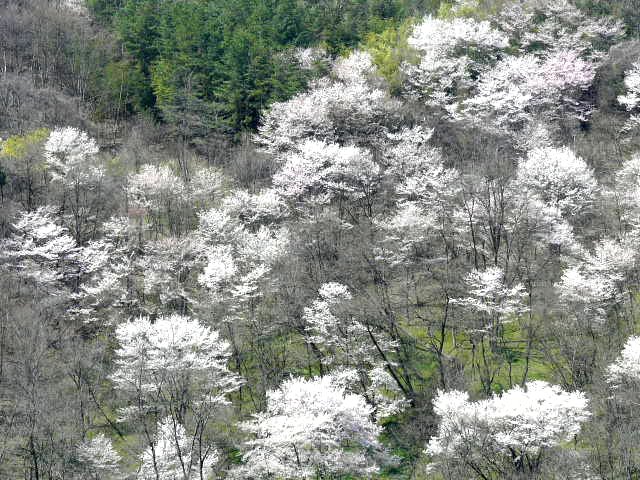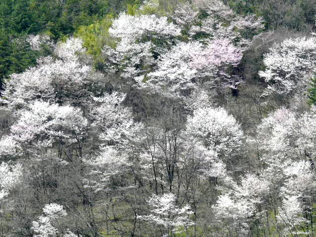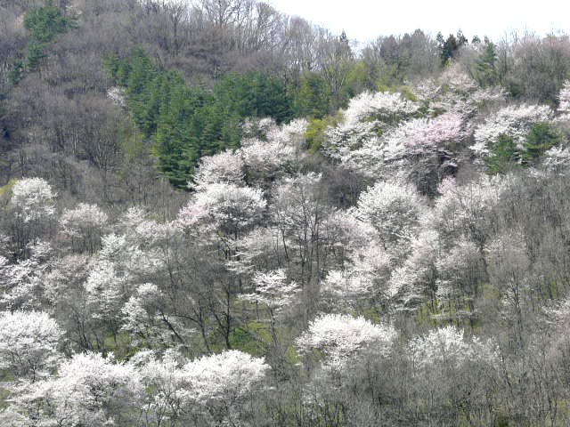 「桜と蓮華岳・北葛岳」(大町観光道路にて)