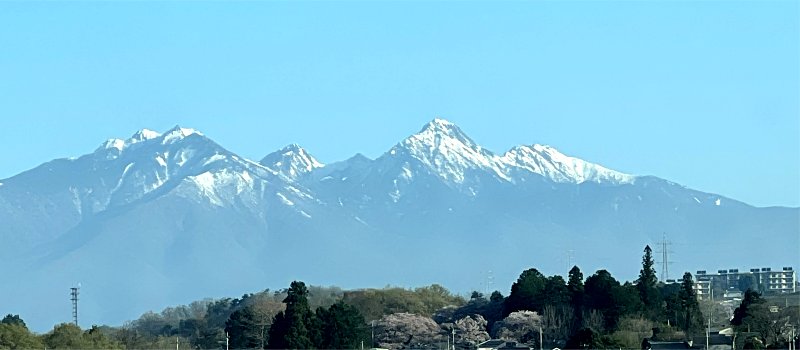 「桜と爺ヶ岳・鹿島槍ヶ岳」(大町観光道路にて)
