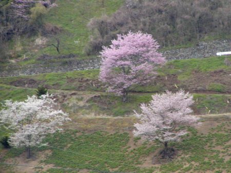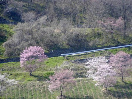 「桜と蓮華岳/五龍岳」(大町観光道路にて)