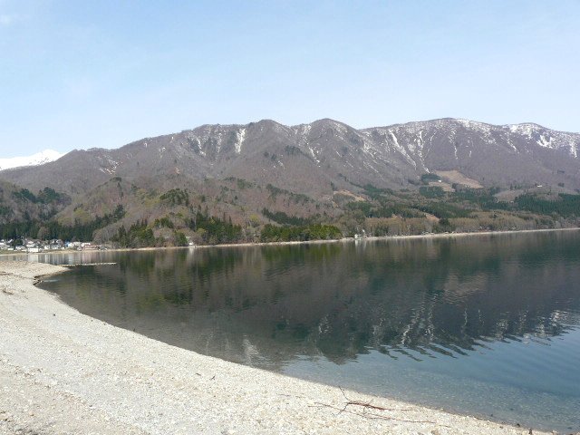 「まだ春は遠い青木湖」(3/中;青木湖にて)