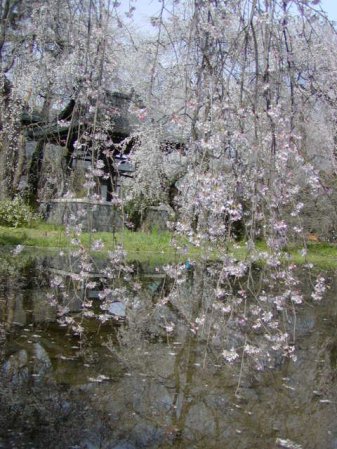 大黒町のシダレザクラは推定樹齢150年で周囲約3m×樹高8m。大黒天境内にあり、1852年に造立された石像大黒天の脇に植えられています。