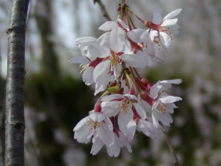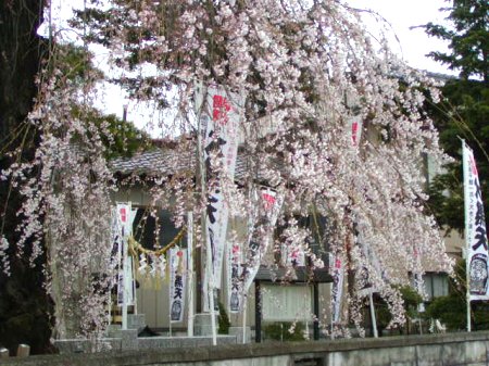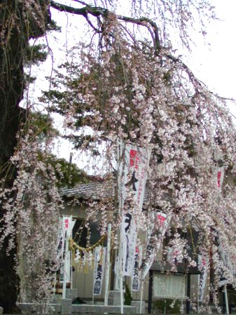大黒天は150年前の嘉永5年に建てられ、桜はこの年に植えられたと言われています。高さ約3mで南北の2幹に分岐、北幹は大きく北方に伸びています。