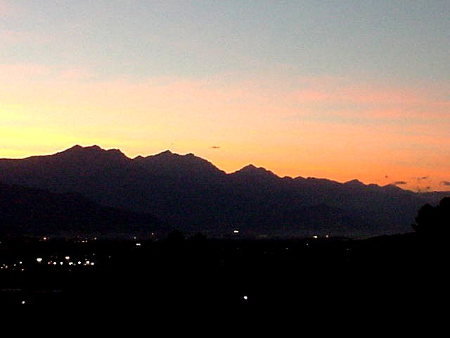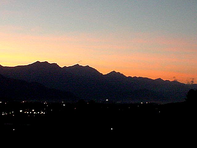 「夕暮れの立山・剱岳」(鹿島槍ヶ岳・冷池山荘テント場の上にて)