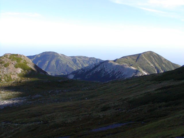 「初秋の雪倉岳と水平線の日本海」(白馬岳にて)