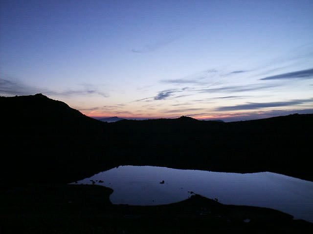 「初秋の鎌池と大渚山」(雨飾・鎌池にて)
