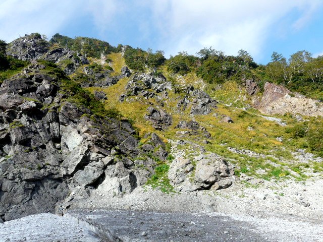 「ミヤマトリカブトが咲く初秋の天狗菱」(白馬・白馬大雪渓上にて)