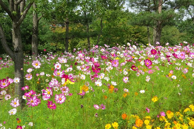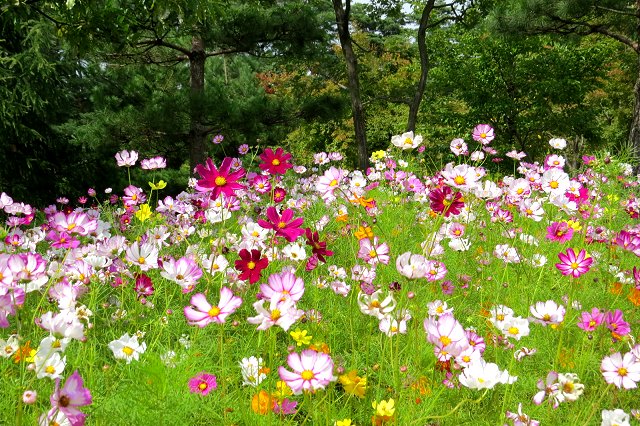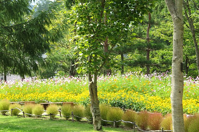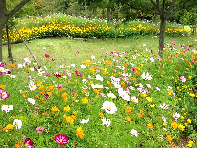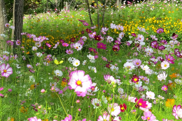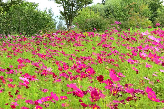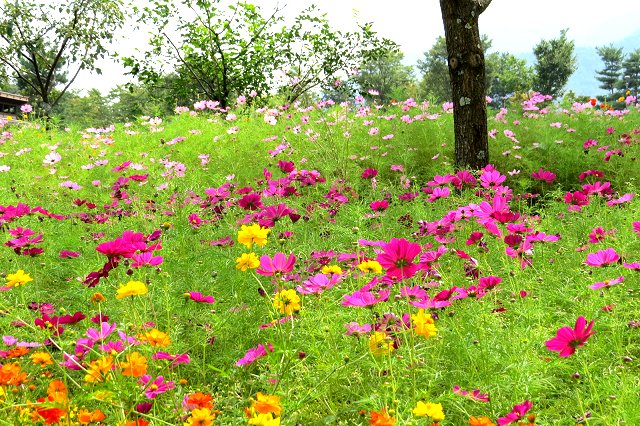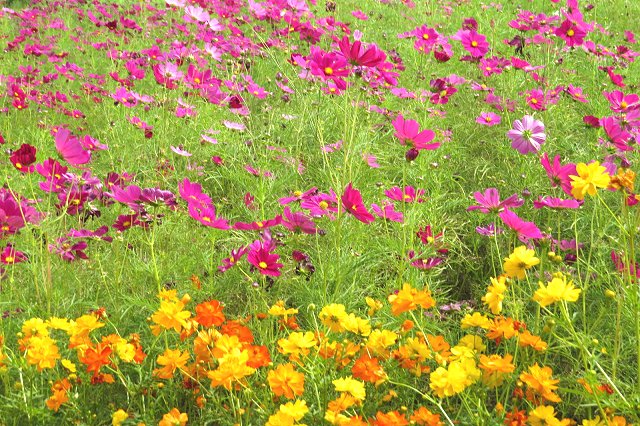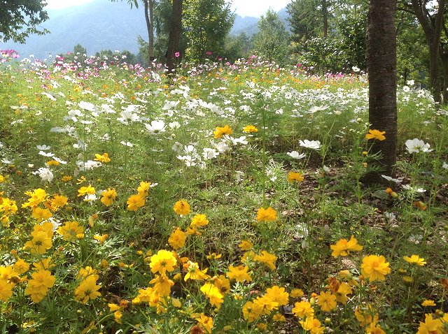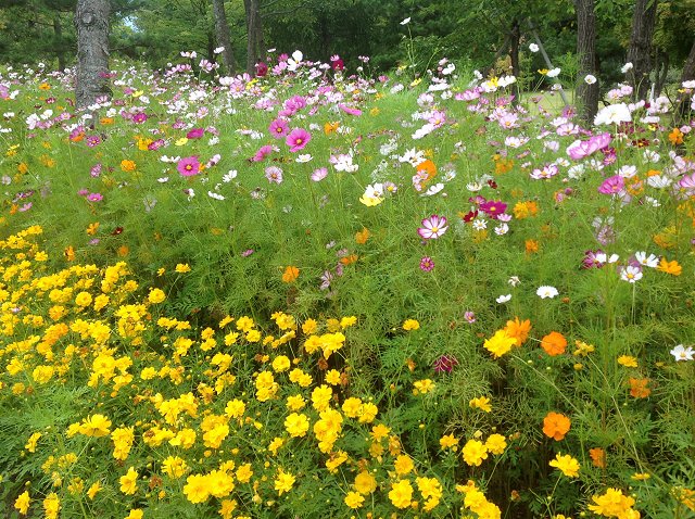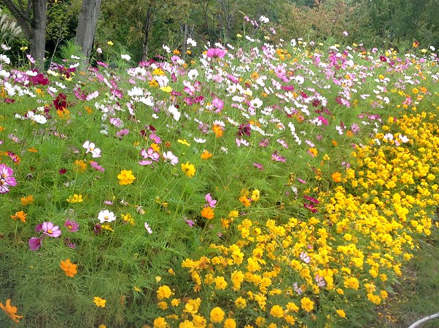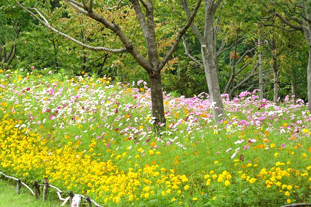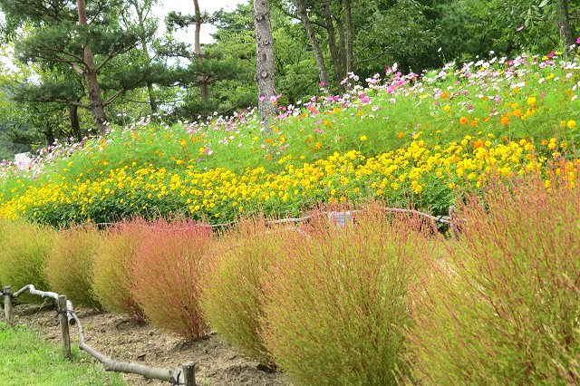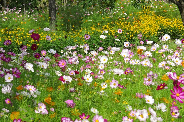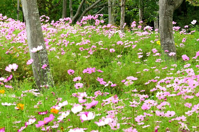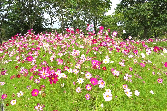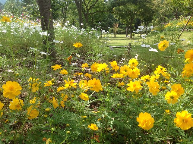 9/30-10/1;無料入園日。9/中-9/下;2.5haにキバナコスモス(ドワーフカーペットレッド)80万本、9/下-10/中;2300uにキバナコスモス(レモン)10万本、 9/下-10/中;4000uに段々原っぱ・花壇に9種16万本コスモス。9/16-9/18;ジニア花摘み。9/23-9/24;キバナコスモス花摘み、10/14-10/15;コスモス花摘み。