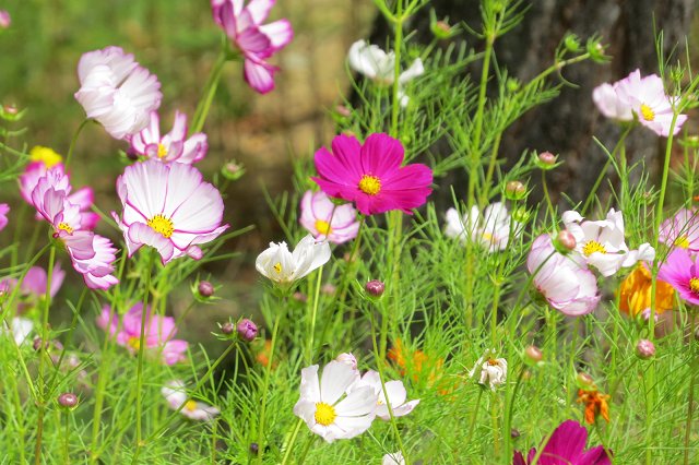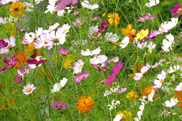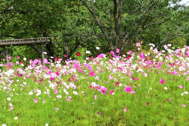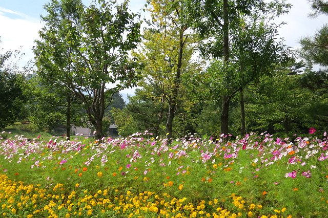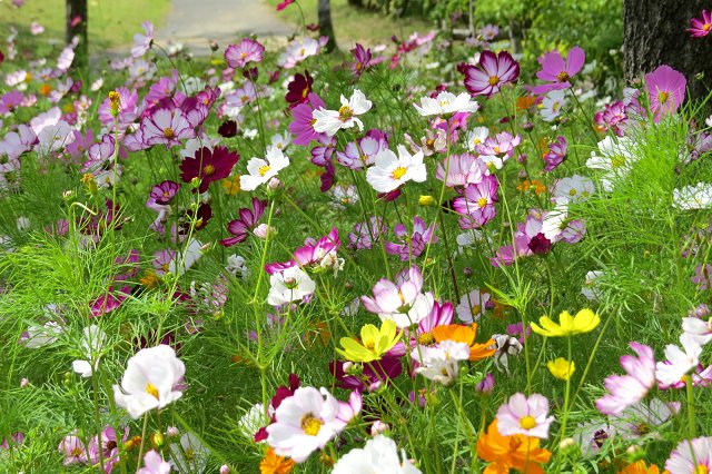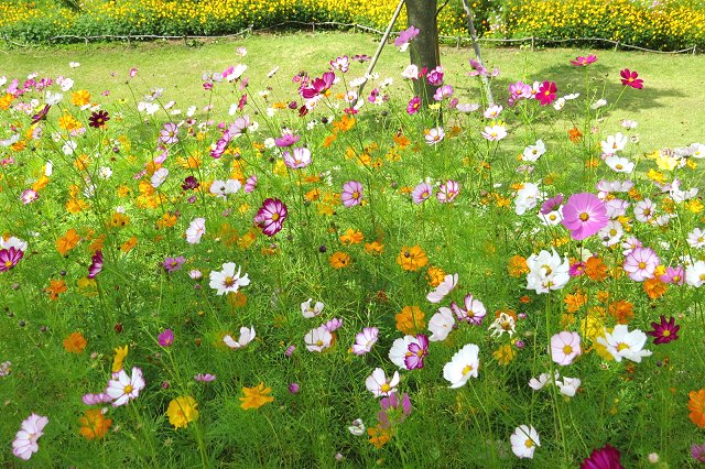 「コスモスの花壇」(9/下;国営アルプスあづみの公園堀金・穂高地区にて)