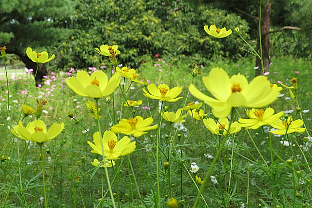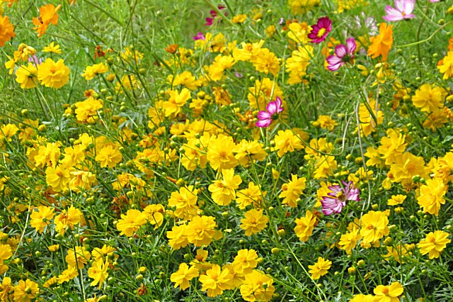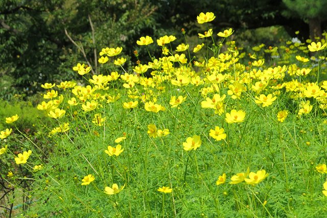 岩原口のキバナコスモスは見頃。 (入園料;\450/大人,\210/シルバー65歳以上,中学生以下無料)(P600,無料)