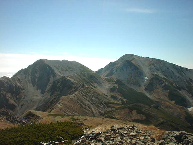 「杓子岳と白馬鑓ヶ岳」(白馬岳にて)