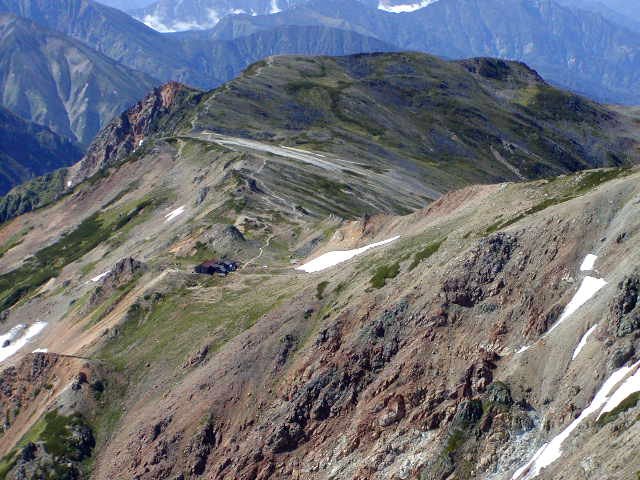 「天狗山荘と天狗の頭・天狗尾根」(白馬鑓ヶ岳山頂にて)