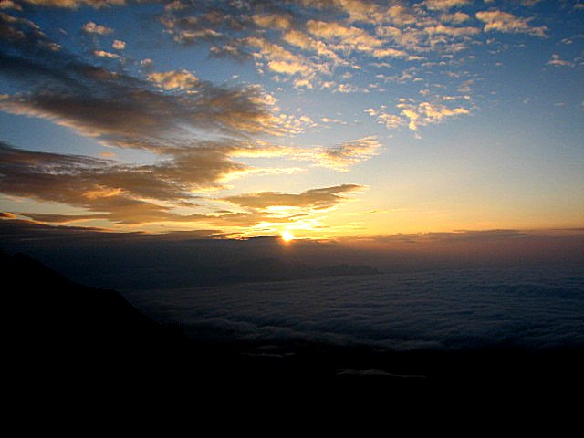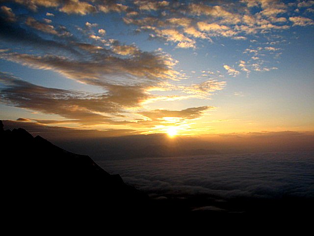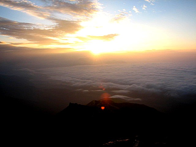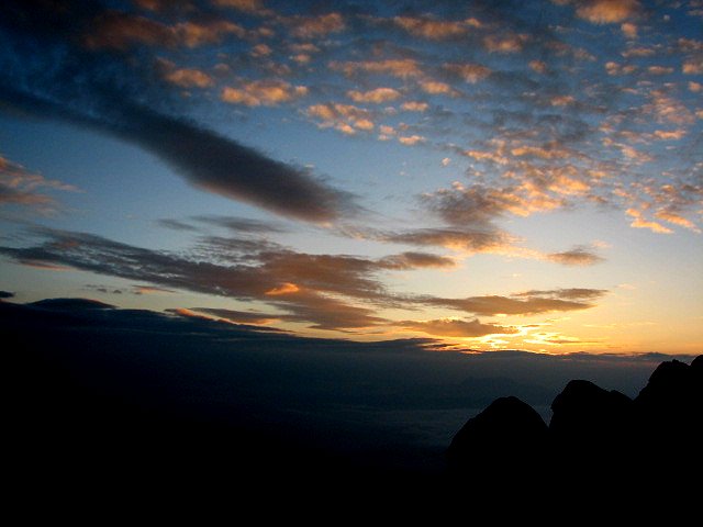 「ご来光の大天井岳と槍ヶ岳」(樅沢岳にて)