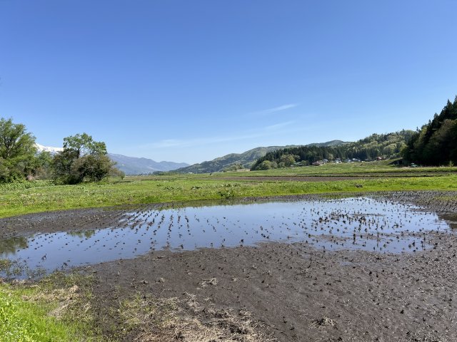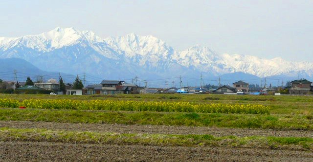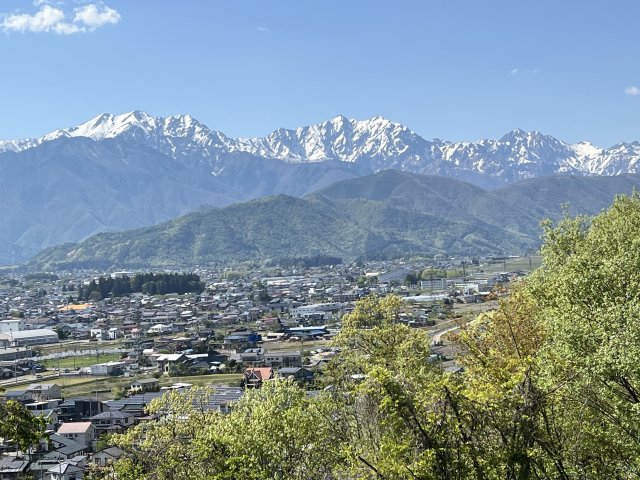 「春の爺ヶ岳・鹿島槍ヶ岳・五竜岳・白馬三山」(池田町にて)