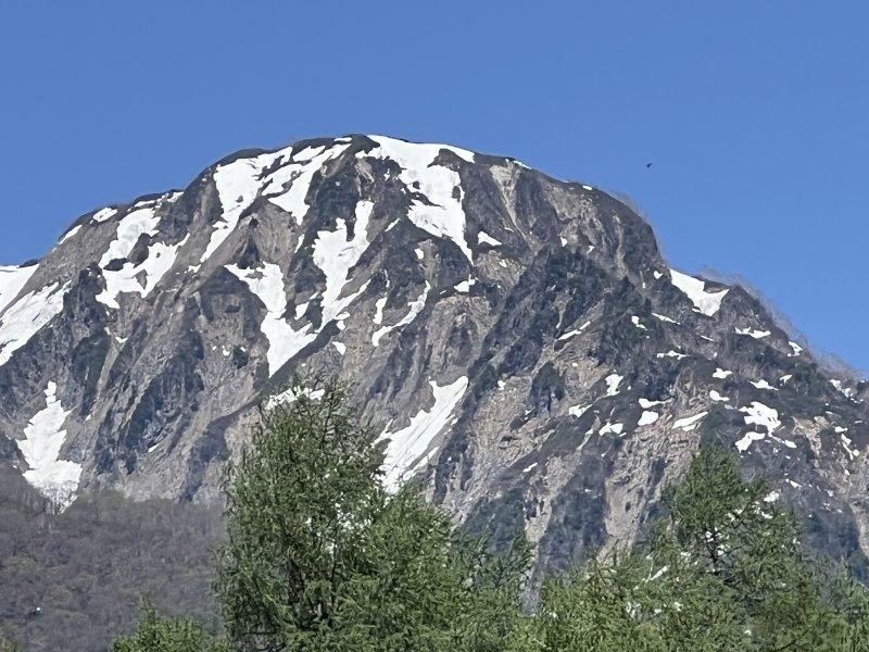 「残雪の餓鬼岳・餓鬼のコブ」(大町にて)