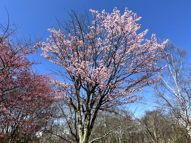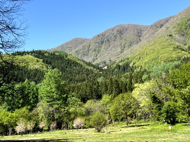 「樹木の芽吹きとヤマザクラ」(高瀬渓谷・葛温泉にて)