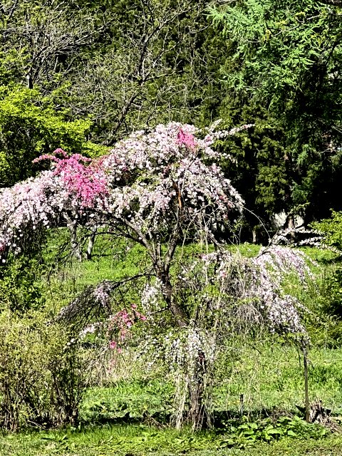 「貞麟寺の枝垂れ桜とカタクリの花」(白馬・貞麟寺にて)