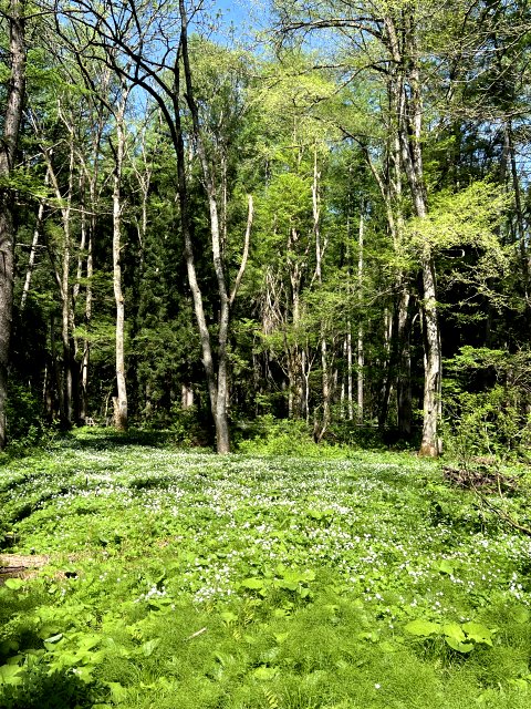 「春の姫川源流のニリンソウの群生」(白馬自然探勝園にて)