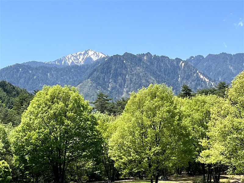 「新緑と鹿島槍ヶ岳」(大町黒沢高原にて)