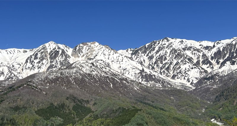 「残雪の穂高連峰(西穂高岳・奥穂高岳・涸沢岳・北穂高岳)