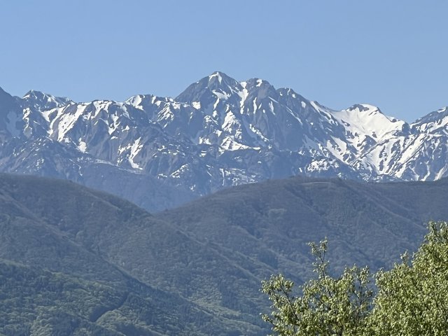 「春の爺ヶ岳・鹿島槍ヶ岳・五龍岳・唐松岳・天狗尾根・白馬三山」(大町にて)