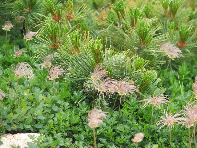 「ハイマツとチングルマの綿毛」(八方尾根にて)