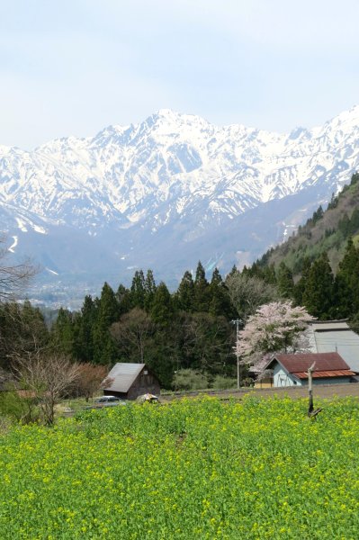 「五龍岳と菜の花・桜」(白馬青鬼にて)