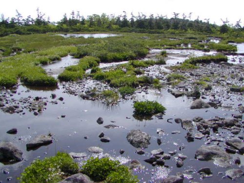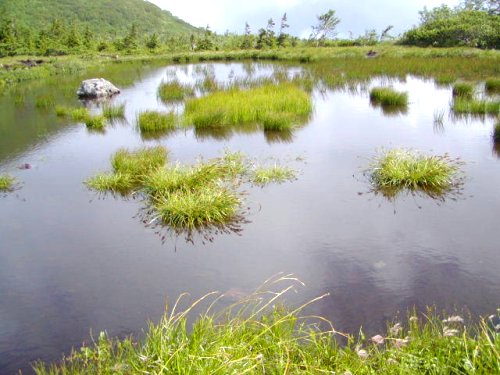 「チングルマの穂と天狗原の池塘」(天狗原にて)