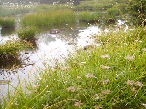 「湿原に自生するワタスゲ」(栂池自然園にて)
