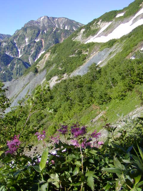 「シモツケソウと鹿島槍ヶ岳・五龍岳」(八方尾根にて)