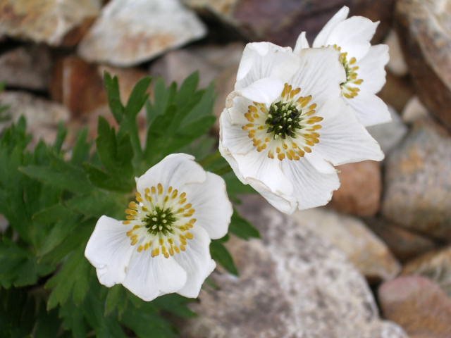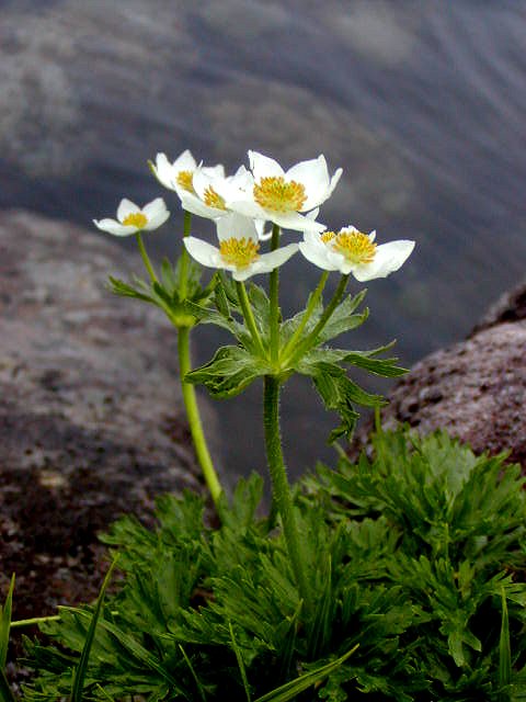 「白馬大池の湖畔に咲くハクサンイチゲ」(白馬大池にて)