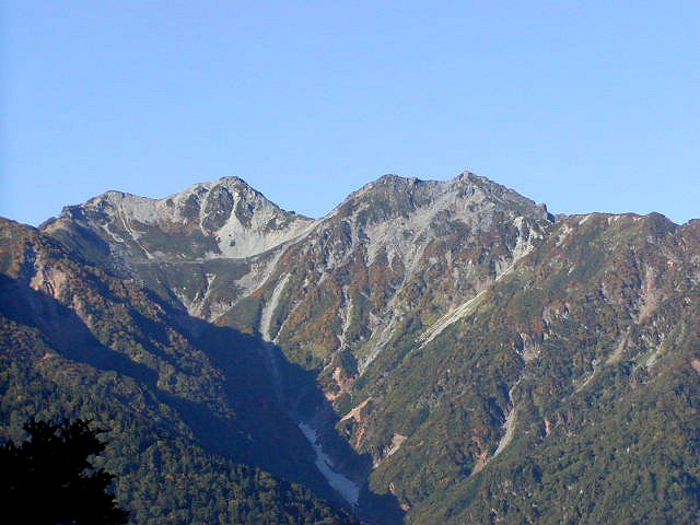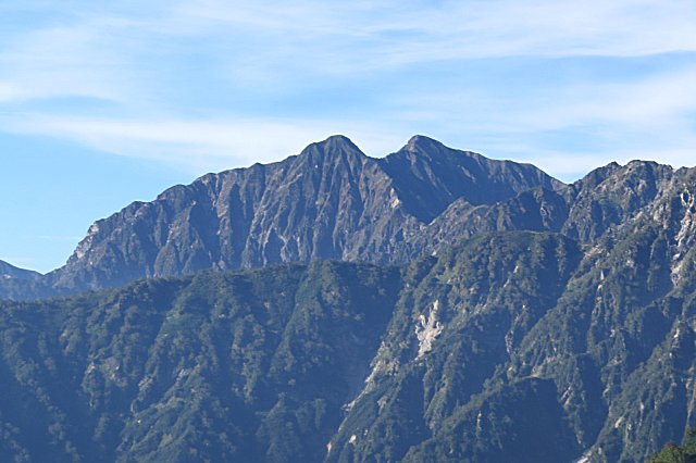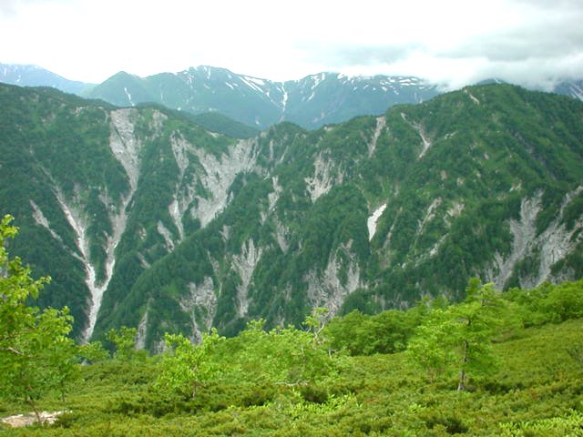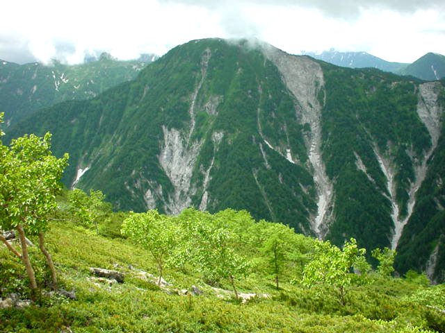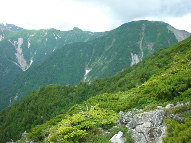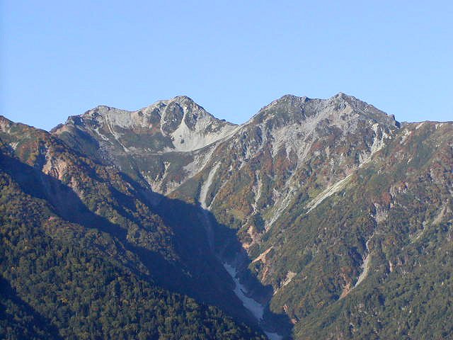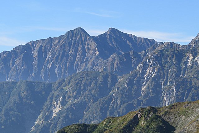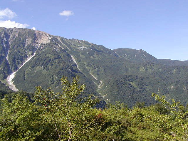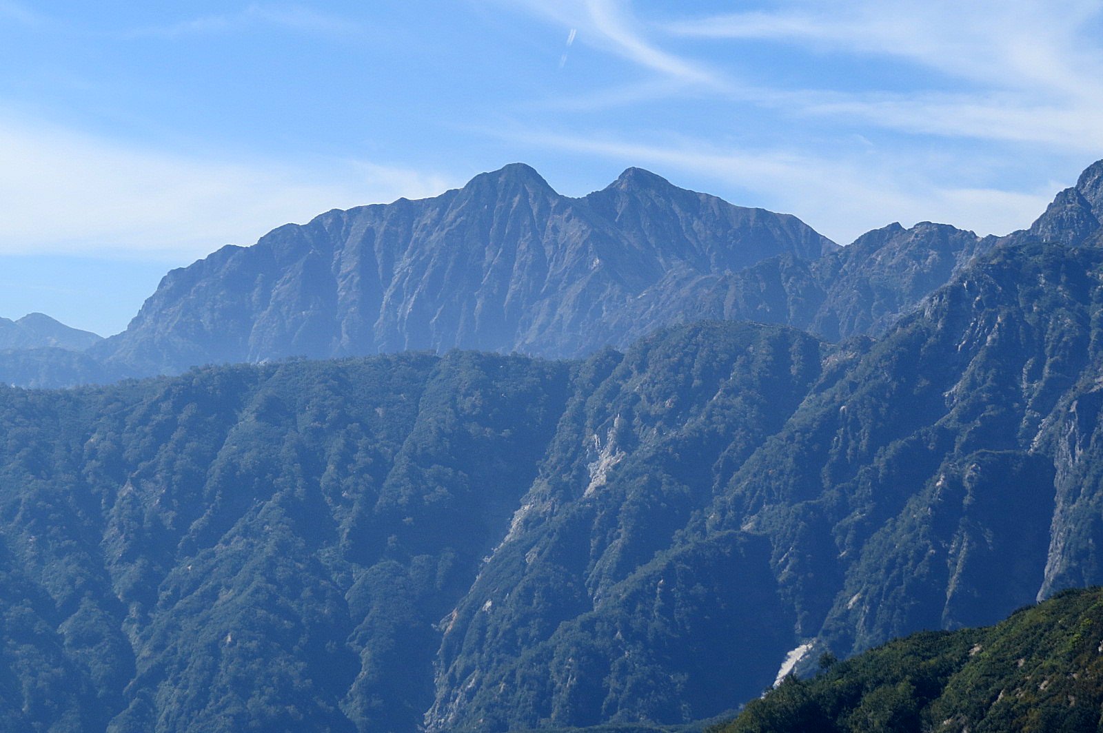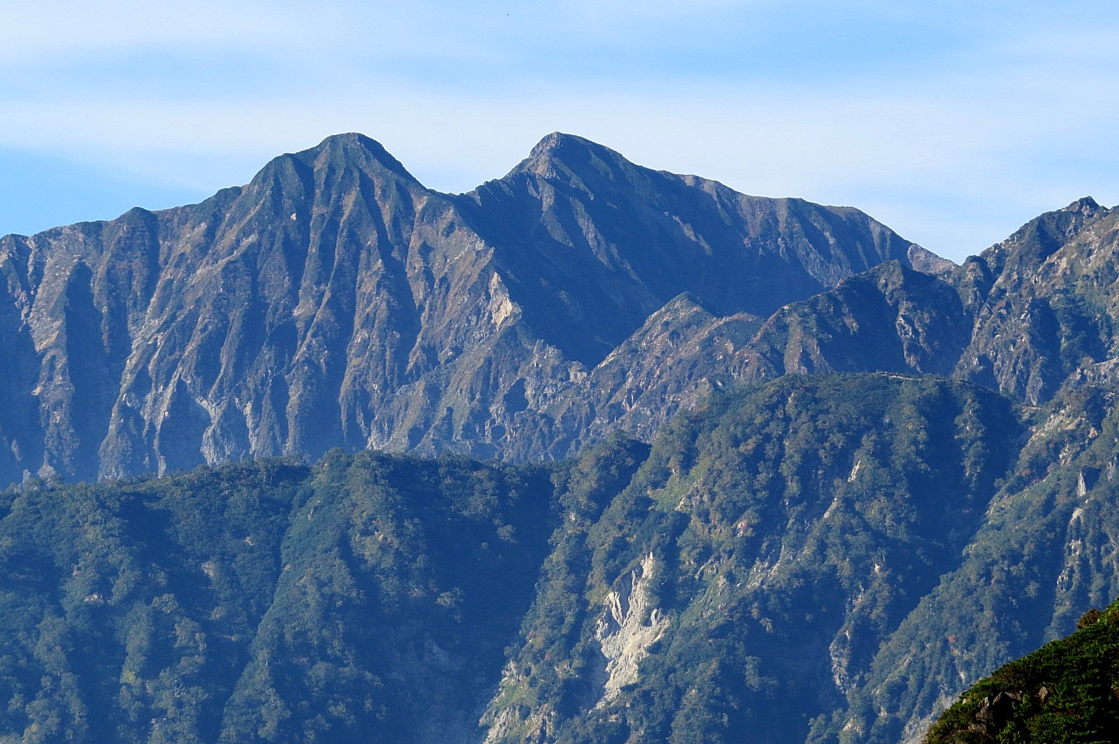 「手前に蓮華岳、中央に餓鬼岳・唐沢岳、