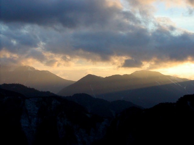 「初秋の蝶槍〜常念岳〜横通岳〜大天井岳」(長峰山にて)