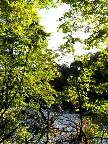 「秋空の白馬三山と松川」(白馬大橋にて)