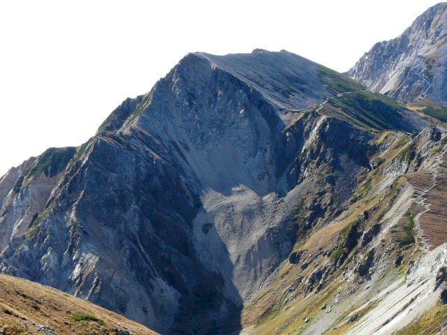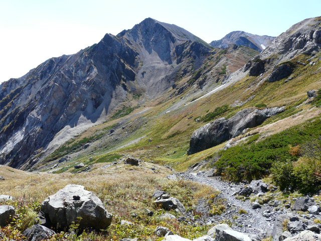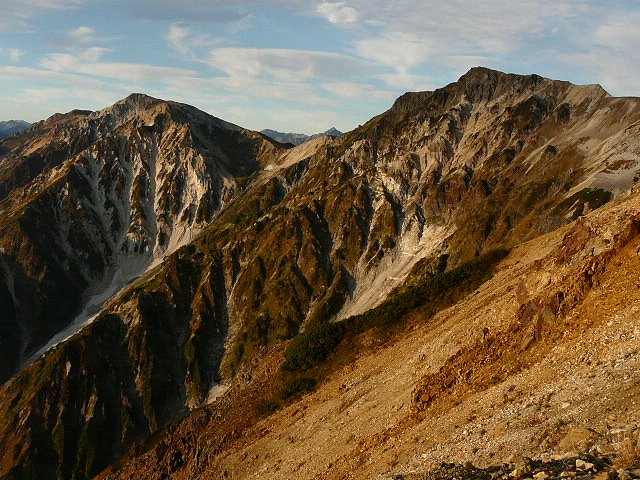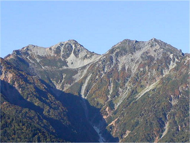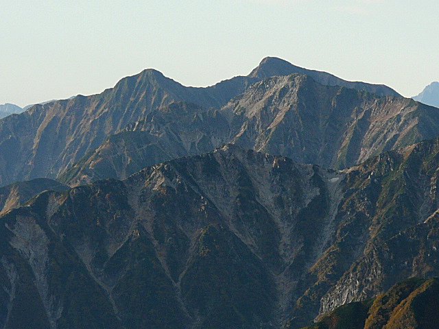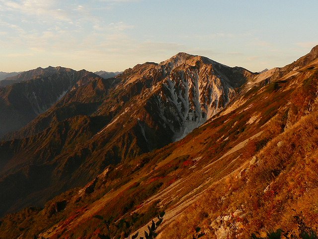 「秋色の杓子岳・白馬鑓ヶ岳」(船越ノ頭〜小蓮華山にて)