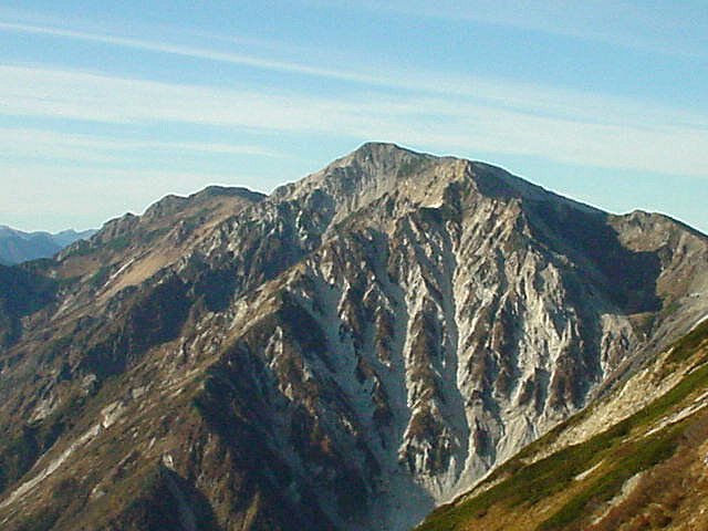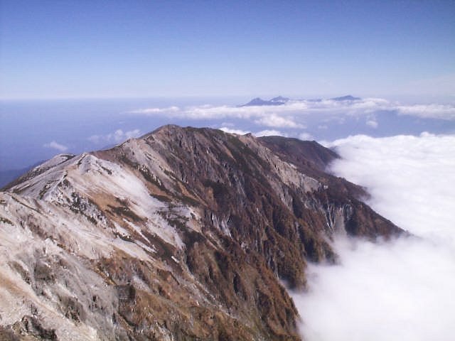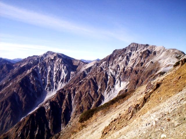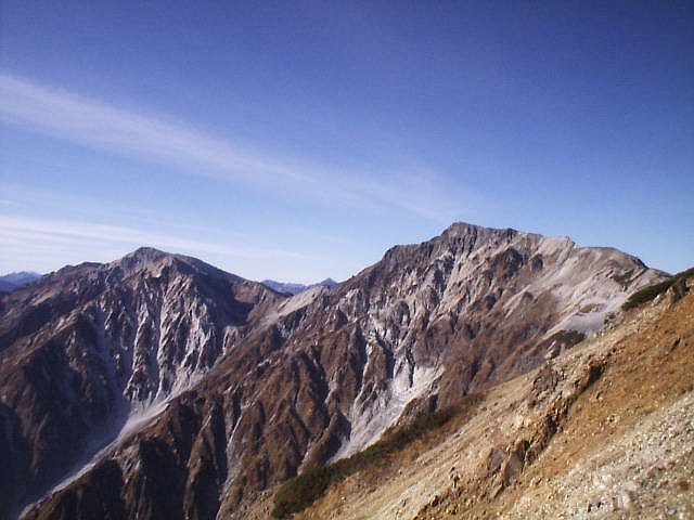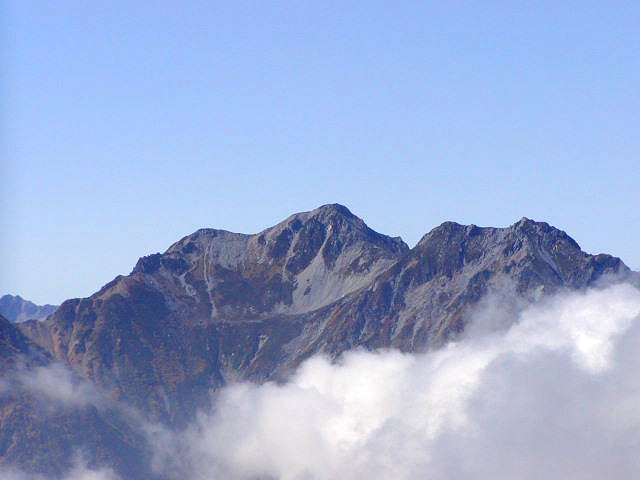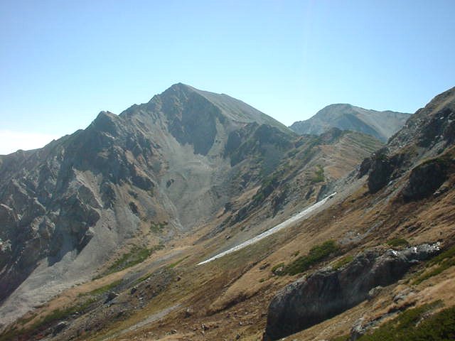 「晩秋の白馬岳、奥に剱岳」(三国境にて)