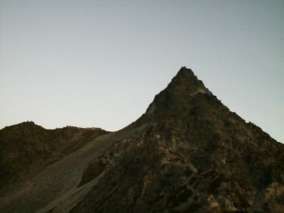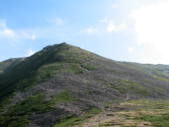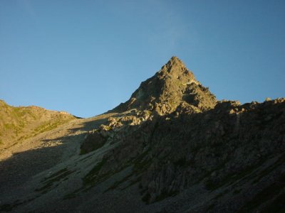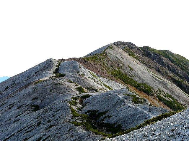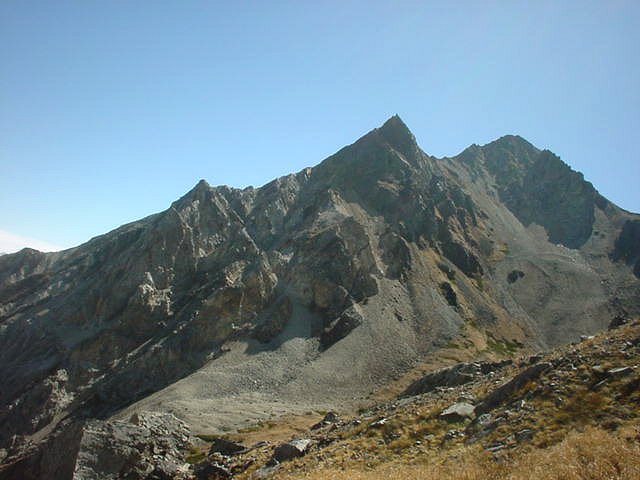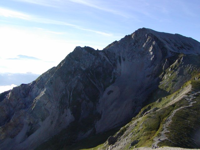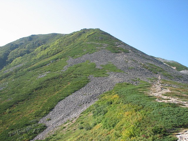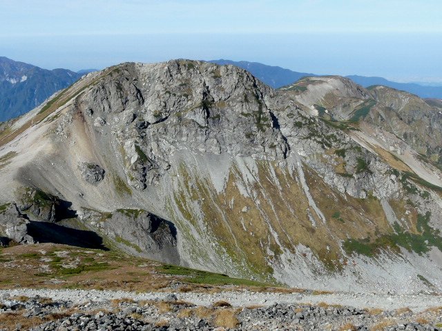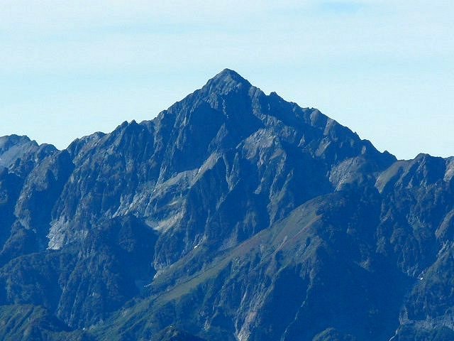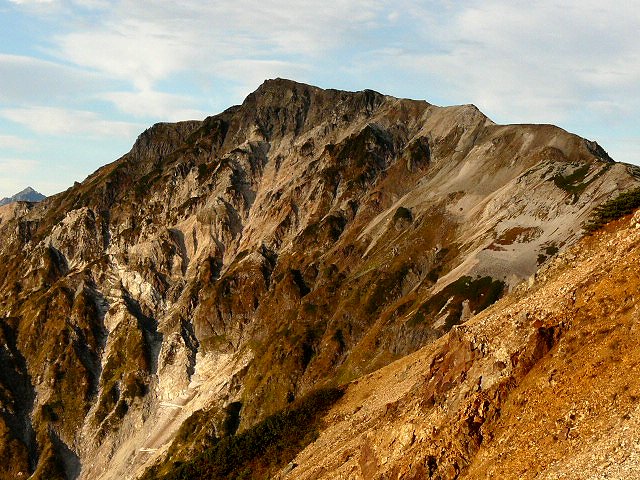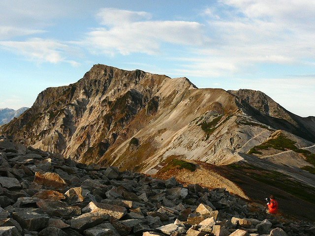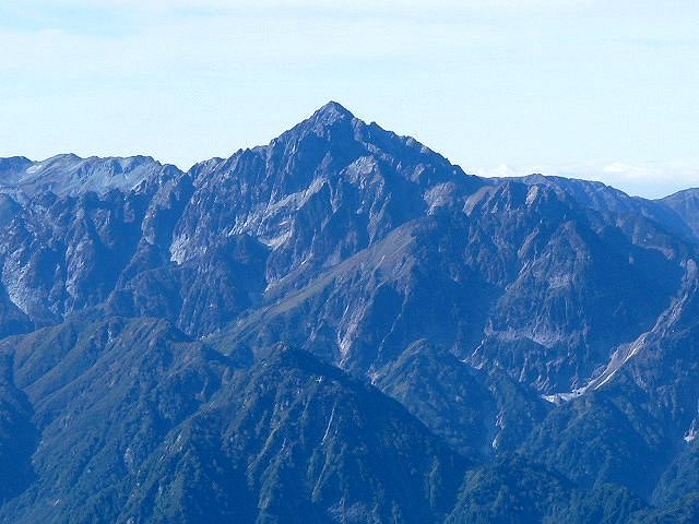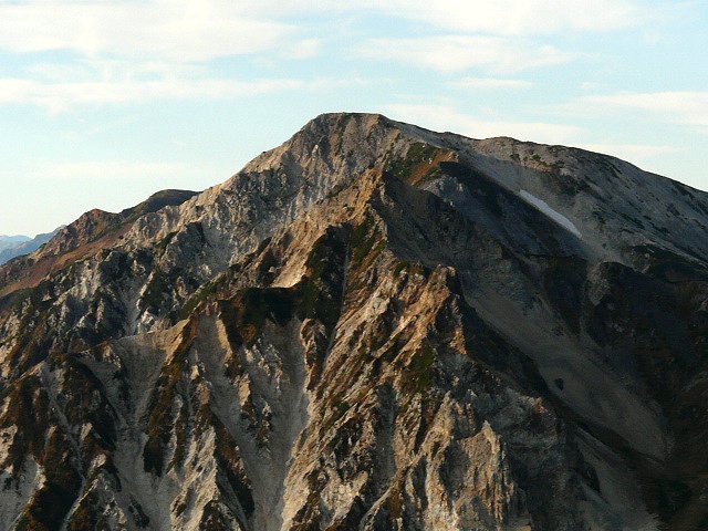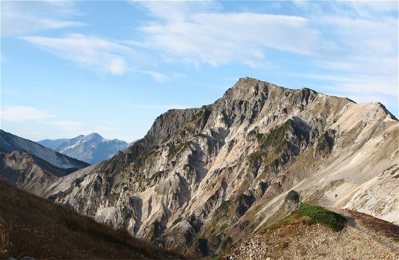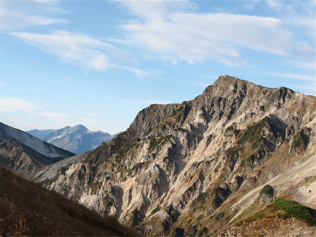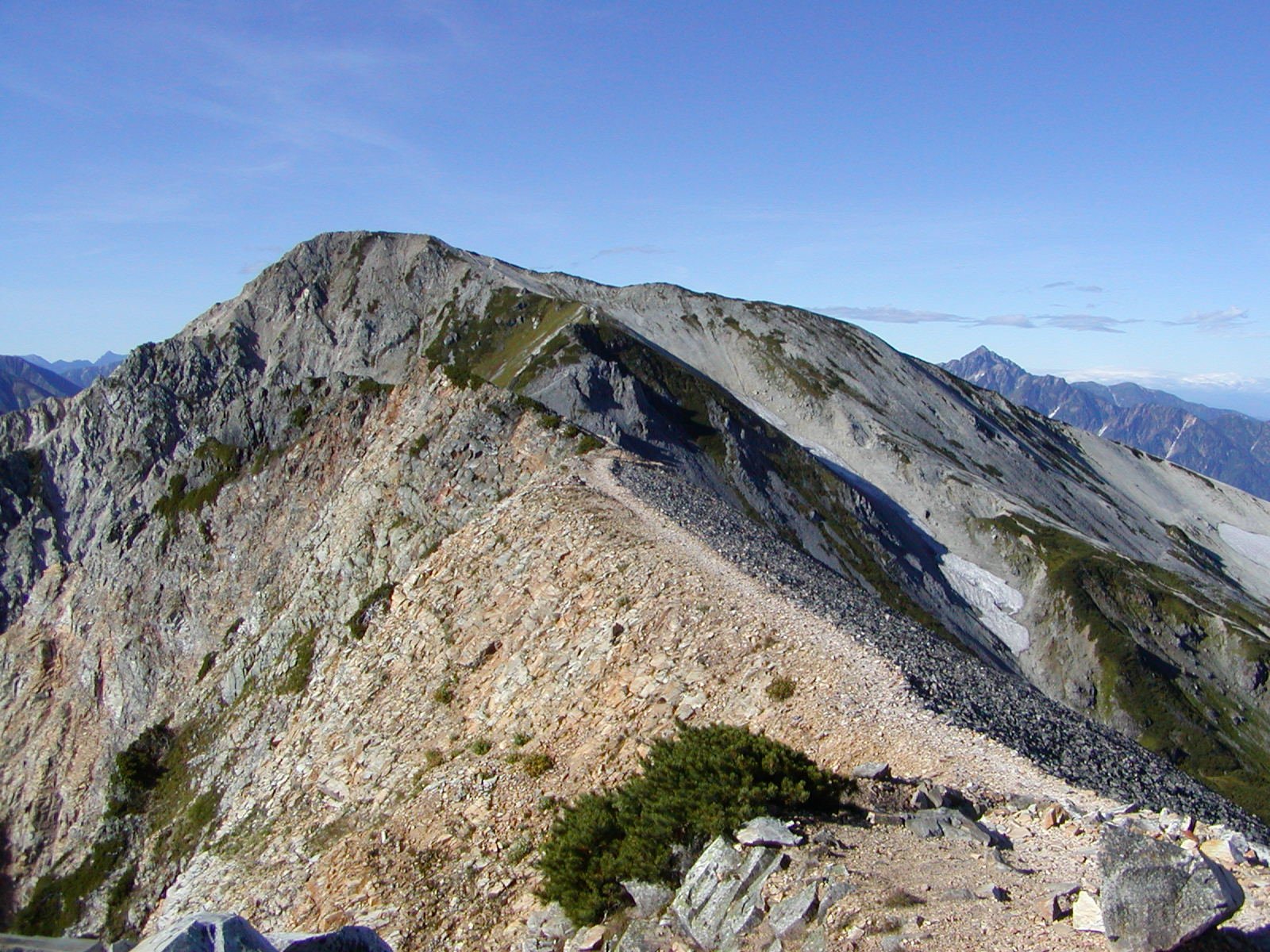 「初秋の杓子岳、奥に白馬岳と小蓮華山の稜線」(白馬鑓ヶ岳にて)