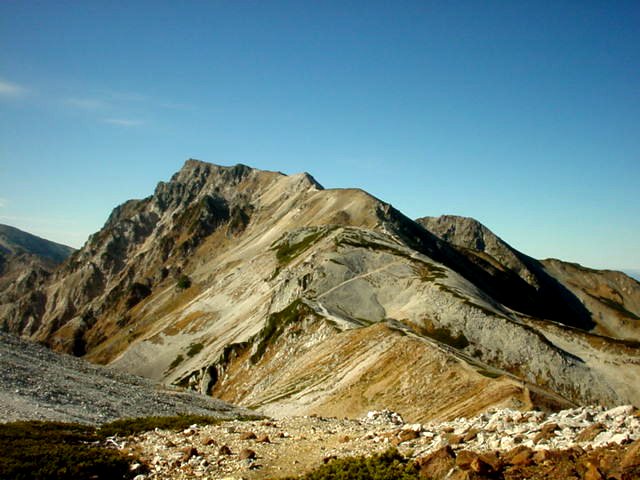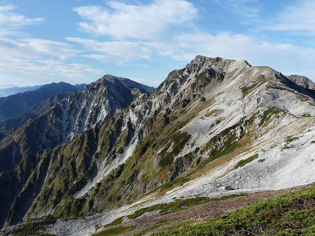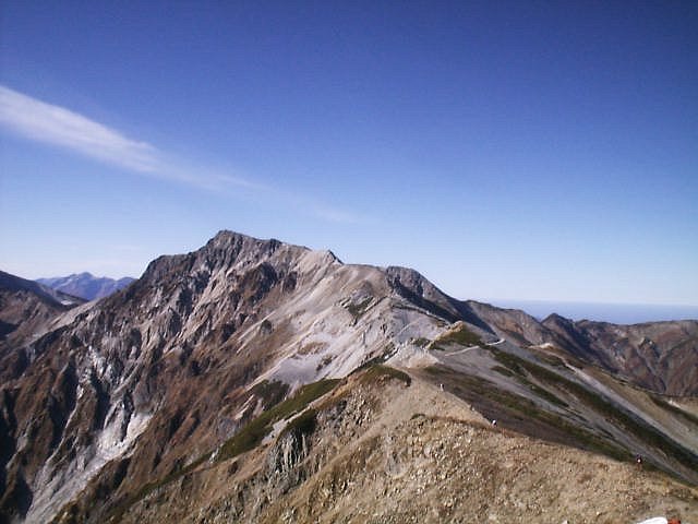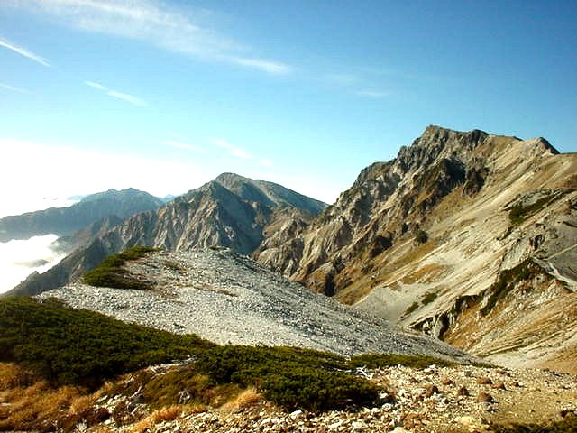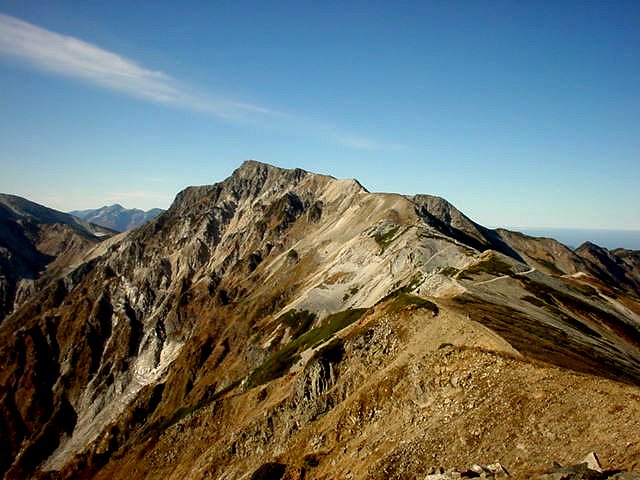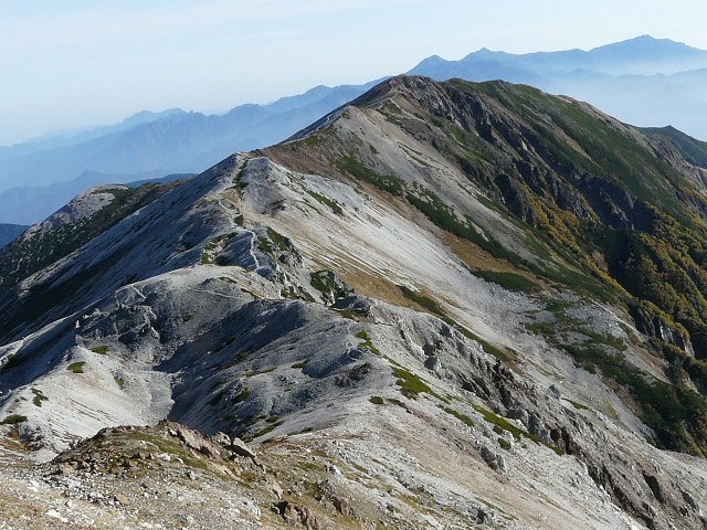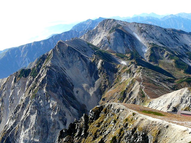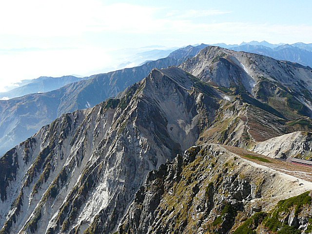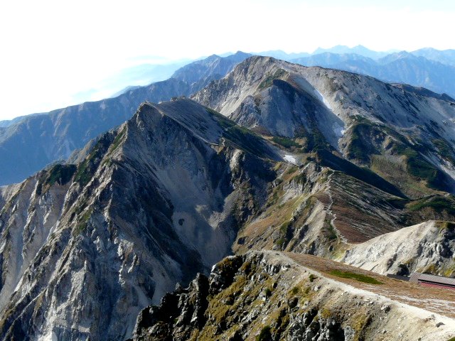 「横通岳、奥に東天井岳・中天井岳・大天井岳」(常念岳にて)